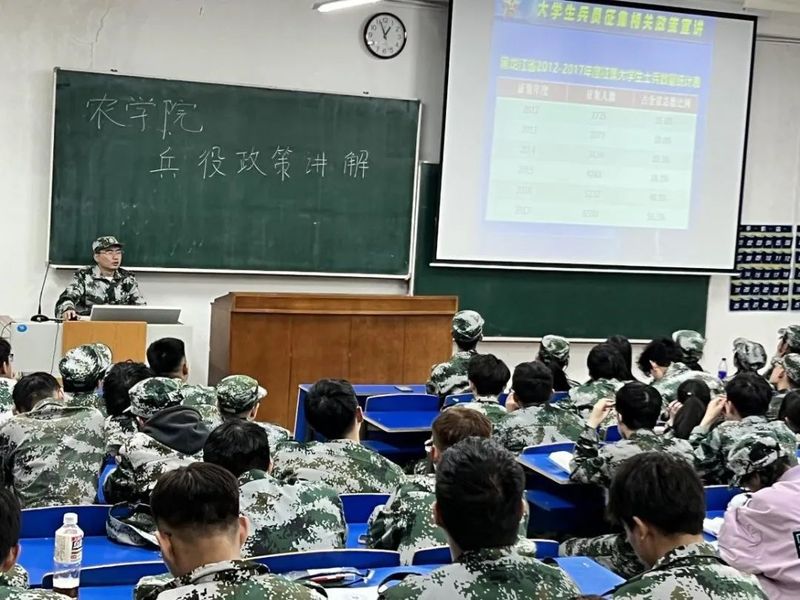 恰逢2022级员工军训开训,同时为了帮助2022级员工能够进一步了解兵役政策,科学合理的规划老员工活,积极报名应征入伍。按照《必赢线路检测中心2022级本科生入学教育方案》要求,学院于5月6日举办了兵役政策讲座,讲座由学院负责兵役工作辅导员王勃老师主讲,2022级全体本科生参加。