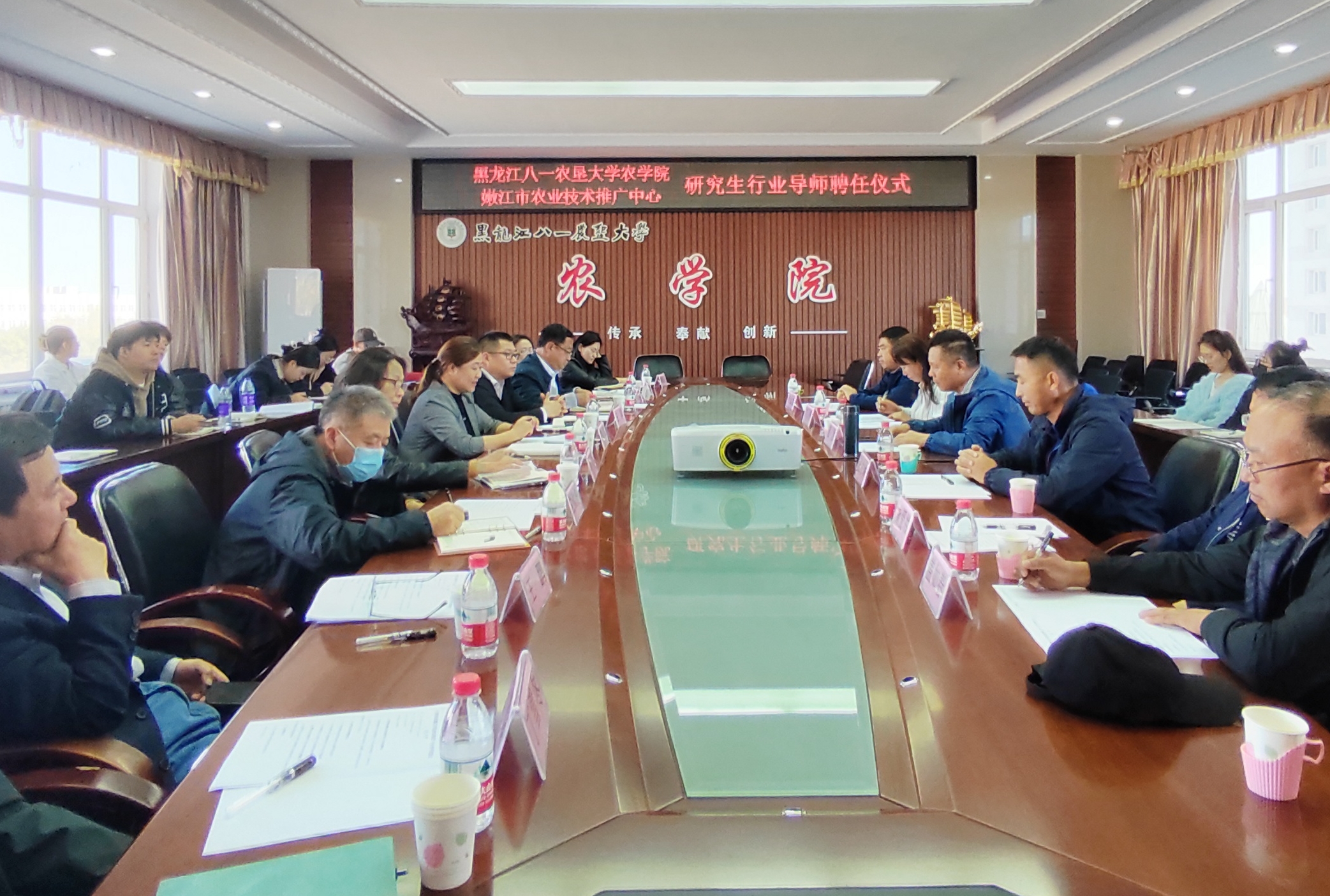 随后,双方进行研究生导师聘任仪式。杜吉到副经理向参会人员介绍了近年来必赢线路检测中心向推广中心派驻的研究生情况,感谢中心对于公司员工培养工作的支持,员工试验、工作及人际交往能力显著提升,希望双方今后以联合培养为基础,取长补短,发挥各自的特色,在人才培养、团队建设等方面加强联系,增进交流与合作。张守林副主任就派驻研究生在中心工作开展情况进行了介绍,并表示八一农大的员工具有较高的科研能力水平,今后会全面对接好员工培养工作,以最好的条件保障员工全面成长成才。双方就人才培养进行探讨,按照专业型硕士培养目标,加强农业科技创新人才培养。通过实践,更好的将理论知识应用到实际工作中去,提高解决问题的能力,促进人才的全面发展,培养综合型人才。