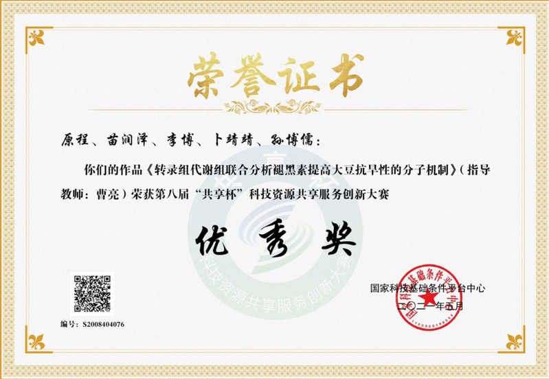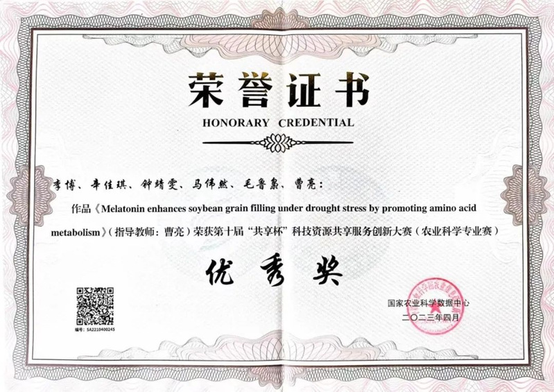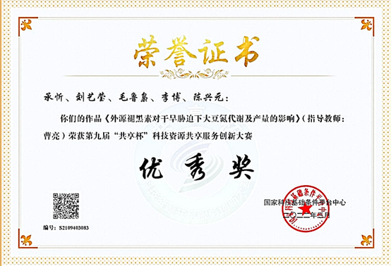 第十届“共享杯科技资源共享服务创新大赛(农业科学专业赛)”优秀奖
