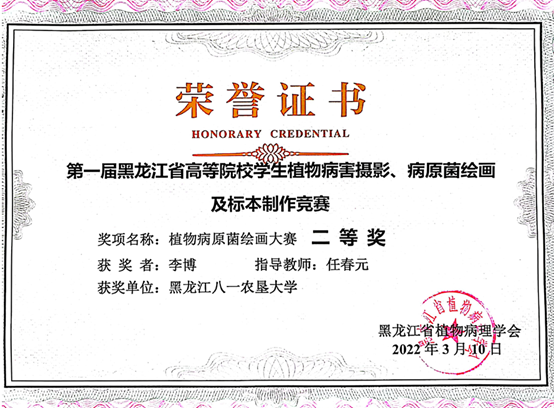 黑龙江省第一届植物病原菌绘画大赛二等奖