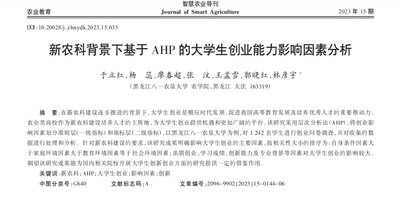 以第二作者身份在《智慧农业导刊》发表了一篇文章