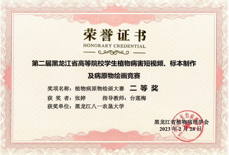 参加黑龙江省高等院校病原物绘画大赛获得“二等奖”