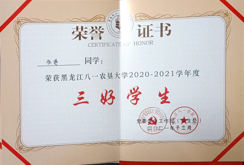 “植物保护八八级员工”奖学金图片“三好员工”三次