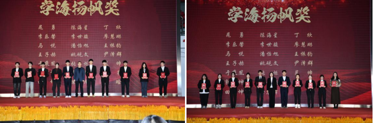 图片员工工作部、员工处处长金耀武、校团委书记李颖颁发学海扬帆奖