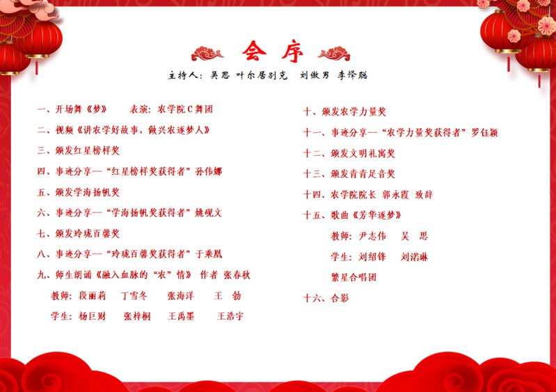 凝聚先优力量,传递青春梦想。活动还设计了师生诗朗诵、师生联唱、2023届全员升学寝室代表线上寄语等串场节目,颂出了农学人刻在骨子里的纯粹深情,唱出了农学人对梦想的执着和对未来的美好期待。