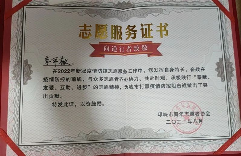 同时在校内、外积极参加志愿者、实践实习活动:如防疫志愿者、春运志愿者、暑期三下乡社会实践等。大三寒假期间参与春季生产实习,在课题组协助师兄师姐做实验积累科研经验。
