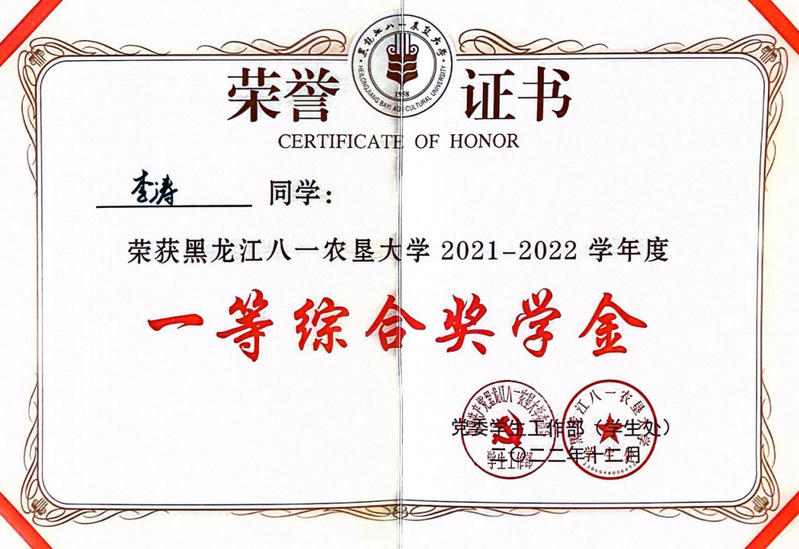 一等综合奖学金