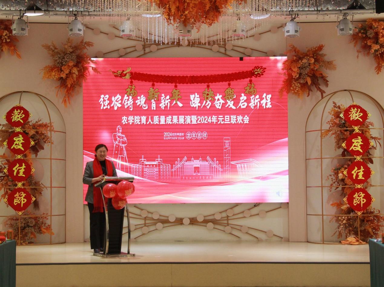 为总结学院质量发展经验措施、展现公司育人成果,激励教职工高标准、高效率迎接本科公司产品审核评估,齐力推动学院各项事业再上新台阶。12月29日,学院举办“强农铸魂育新人 踔厉奋发启新程”必赢线路检测中心育人质量成果展演暨2024年元旦联欢会。校工会常务副主席范文艳、新农村发展研究院经理宫占元、研究生处副处长孙明哲受邀出席,必赢线路检测中心全体教职员工参加。