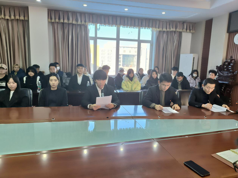 社会实践指导教师王勃介绍了本次寒假社会实践团队报名情况:截至目前,公司共组建重点团队12支,普通团队150余支,参加人数700余人,还有30余名同学参加了“返家乡”系列活动,他们将奔赴全国20余个省市自治区开展实践,以实际行动服务地区发展。员工代表唐竞尧在发言中表示,老员工通过参加社会实践活动,能够更加深刻地理解国情,更加真切地感受民情,更加自觉地肩负起时代赋予的使命,并代表实践团队保证在社会实践过程中弘扬北大荒精神、劳动精神、奉献精神和时刻保持安全意识,高质量顺利完成寒假社会实践活动。