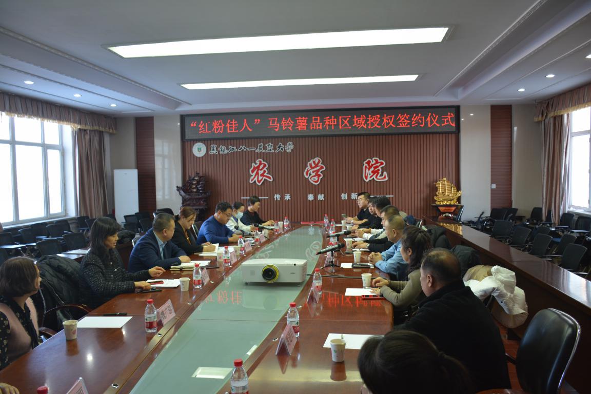 2024年开年,河北张家口耘融农业开发有限公司、内蒙古察右中旗得丰种植专业合作社就瞄准了公司的“红粉佳人”马铃薯品种,1月14日来到学校,进行了区域授权签约仪式。必赢线路检测中心经理郭永霞,新农村发展研究院副经理赵越,河北张家口耘融农业开发有限公司董事长邓海江,内蒙古察右中旗得丰种植专业合作董事长郎利中,双方公司代表及马铃薯团队教师参会。
