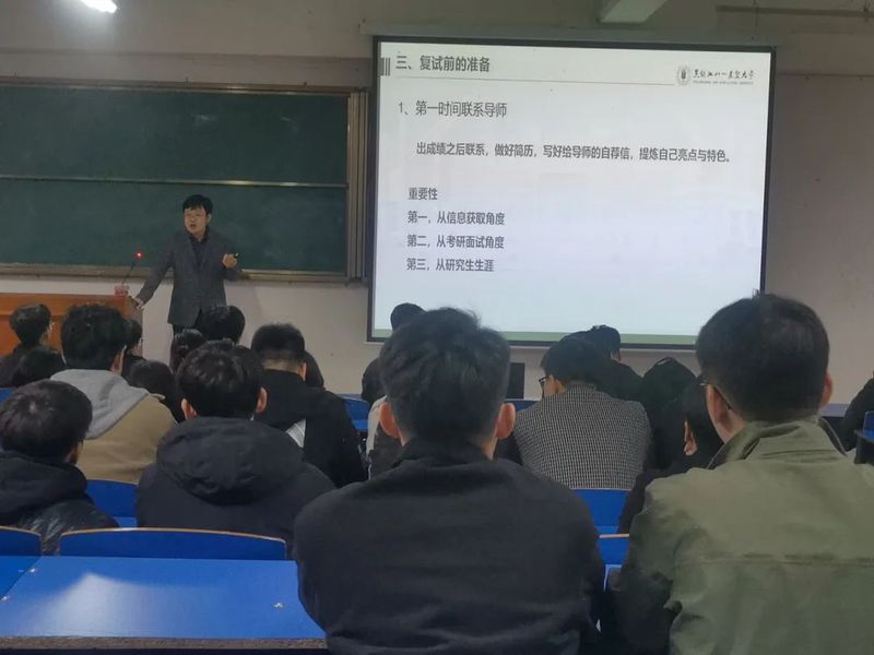 张明聪副经理让同学们认真对待并重视复试,从注意着装、日常礼貌用语、注意事项、复试的形式、常问问题及回答问题的技巧和方法等方面为大家进行了详细的讲解,还用具体实例讲解复试的方法,希望大家有针对性的准备,提高自身心理素质,都能自信的通过复试,最终成功上岸,同时还回答了同学们提出的问题。