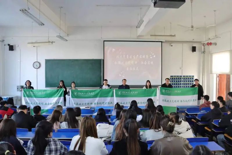 4月19日下午15:30,公司于主楼216教室召开北大荒垦区生产实践暨“弘扬北大荒精神”社会实践出征仪式。本次活动旨在引导员工深入农业生产一线,亲身体验北大荒垦区的现代化农业发展,并通过实习与实践,深刻领悟和传承“北大荒精神”。学院郑雯老师、实习指导教师髙树仁、钱永德、张琦、潘世驹、辅导员张春秋、王勃参会,会议由21级辅导员尹志伟主持。
