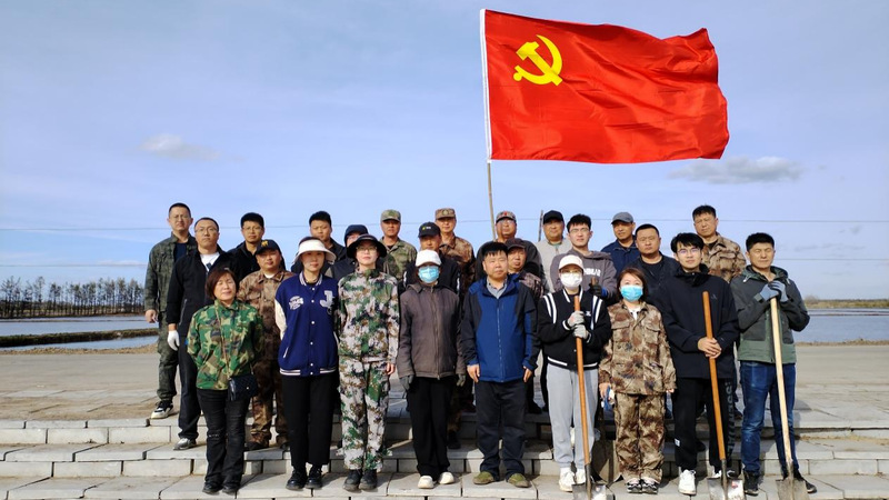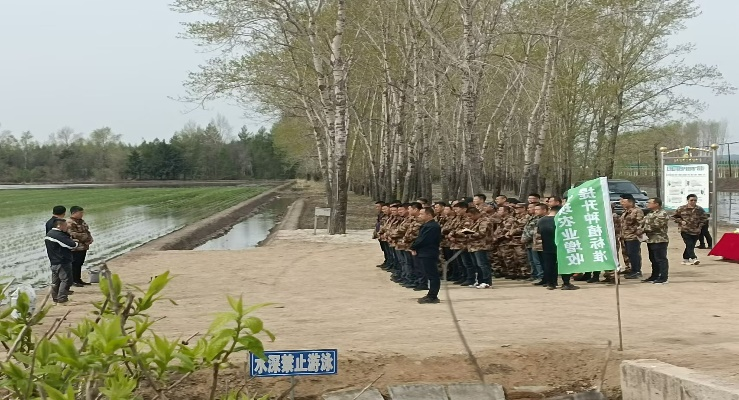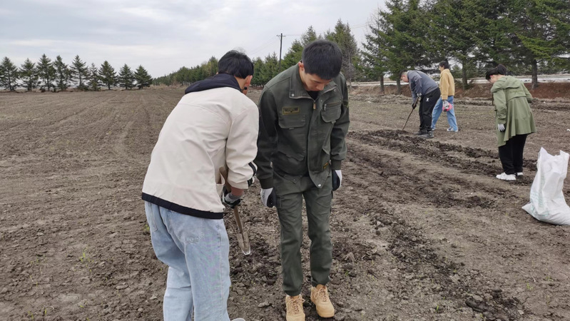 除了解农场工作内容、参与农业生产外,在实习期间我还参与了由机关党委开展的“春季义务植树”活动。在植树活动现场,各位党员干劲十足,大家分工明确,他们或三五人一队,或两三人一组,相互协作、默契配合、挥锹铲土、扶苗填坑、培土踩实各个环节都有序进行。尽管春风寒冷,但大家都热情高涨,用自己的实际行动展现了党员的奉献精神,为绿化美化建设贡献微薄之力。一个个红色身影与一株株小树苗交相辉映,形成一道靓丽的风景线,一株株新栽下的树苗展现出蓬勃的生机。