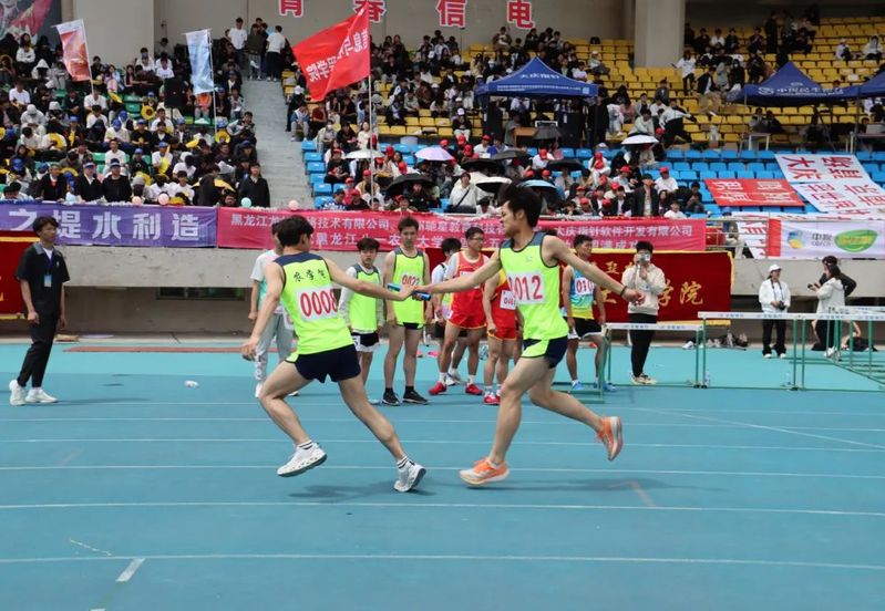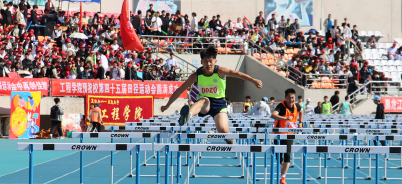 闫旭同学在校运会男子110米跨栏中取得第五名的佳绩