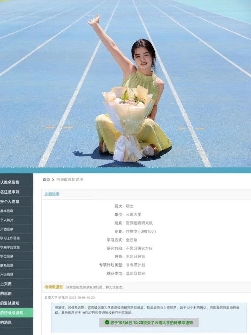 必赢线路检测中心2020级农学二班任紫星,共青团员,现已推免至云南大学。曾被授予三好员工等荣誉称号,获校二等综合奖学金等奖励。