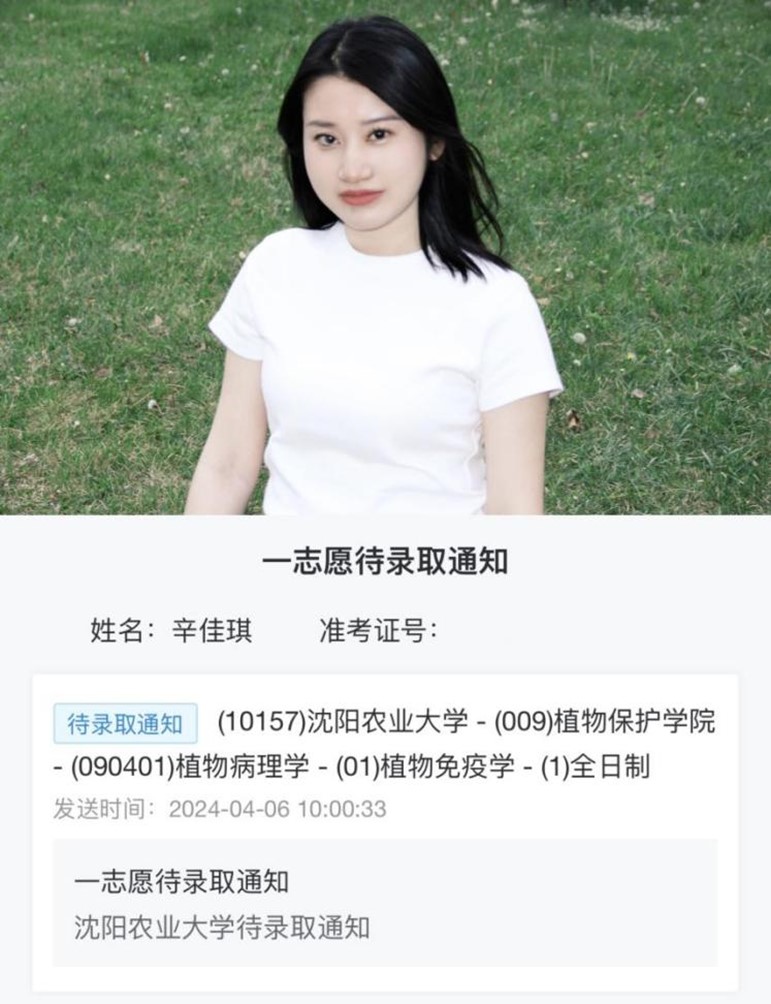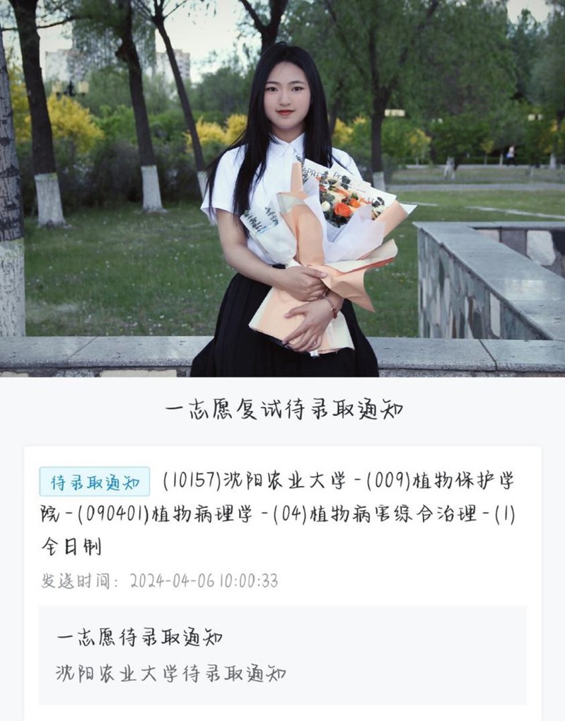 必赢线路检测中心2020级农学二班辛佳琪,中共党员,现已被沈阳农业大学录取。班级团支书,曾任必赢线路检测中心员工会副主席