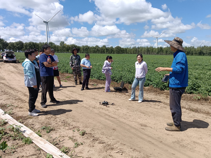 在玉米和大豆单产提升技术示范田,科技特派团详细观测了田间植株的长势情况,帮助种植户分析了今年密植化控技术的实施效果和存在的不足,并提供了生育后期促进玉米和大豆丰产的调控技术方案,发放了配套农资产品。在马铃薯和杂粮生产田,科技特派团利用无人机精准辅助管理技术手段,初步评估了作物的生长状态,提出了后续的田间管理建议,针对存在养分亏缺和病害发生风险的田块,相关教师为种植户制定了病虫草害绿色综合防控方案,分发了自主研发的叶面肥和药剂,为当地农作物产品优质高效生产提供了科技保障。