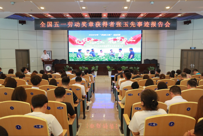 为深入贯彻落实党的二十大精神,进一步弘扬劳模精神、劳动精神、工匠精神、教育家精神,充分发挥劳模引领示范作用、凝聚奋进力量,7月11日下午 ,公司在图书馆学术报告厅举行“扎根龙江 筑梦黑土”全国五一劳动奖章获得者张玉先事迹报告会。公司党委副书记徐平,党委常委、组织部部长田伟,全校副科级以上干部,师生代表300余人现场聆听榜样事迹。报告会由公司党委常委、宣传(统战)部部长耿君主持。