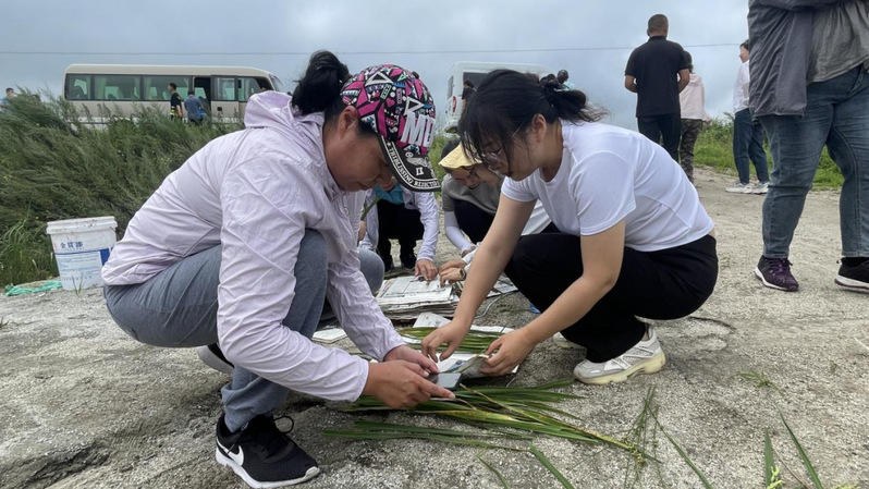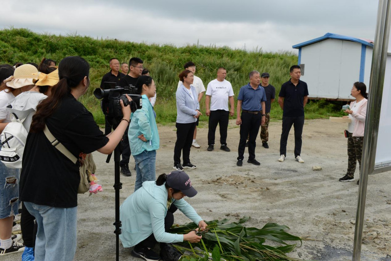 在八五三农场将军山,服务团成员聆听由公司周玉玲教授撰写的《雁乡铭志赋》,感受北大荒开发建设、发展壮大的磅礴力量和北大荒精神的代代相传。