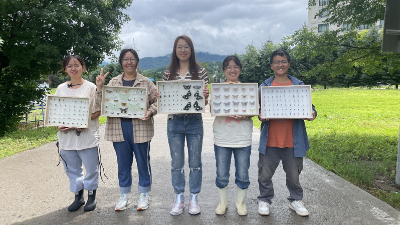 为了让同学们更好地学习昆虫的特征和生活习性,为了学习昆虫标本的采集制作方法,植物保护专业同学跟随老师们来到亚布力进行昆虫实习。