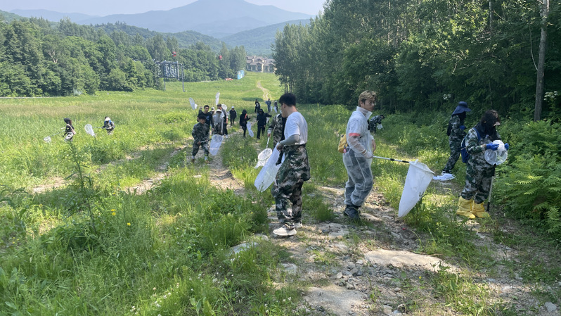 诚然冬天的亚布力游客络绎不绝,但夏天的亚布力也别有一番风景,生机勃勃,树林阴翳,白色雪道被植物染成翠绿,冰凉的溪水流淌。实习期间,老师带领我们行走在草丛中,穿梭在树林间,寻找昆虫的踪迹,同学们从一开始遇见昆虫时的手足无措,到后来游刃有余地捕捉昆虫。