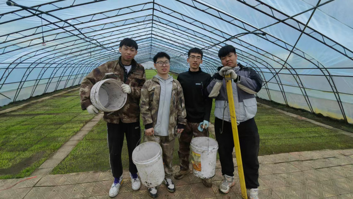 科技小院的人才队伍在百日间不断壮大——四月首批入驻的4名研究生王飞、谢军、于乘凰、王建淞被亲切称为“洪河F4;六月随着专业研究生鲍忠良的加入,研究生队伍升级为五环战队”;七月专业研究生郭迪炜报到后,这支涵盖育种、栽培、植保多领域的团队已成为名副其实的“六边形战士”。研究生们的企业导师王伟主任的打趣道:“这些员工们白天是泥腿子,晚上变键盘侠,个个都是好样的!”目前,小院研究生们正参与“寒地糯稻田快速脱水技术”等校企联合课题,李红宇教授跟小院研究生们强调:“人才就像稻种,扎得下根,沉得下心,才能结出实果。”
