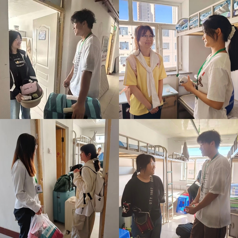 到了宿舍楼下,学哥学姐们早已笑盈盈地等候,工作认真,分工合作,给每位新生分发钥匙,并细心叮嘱寝室的注意事项。