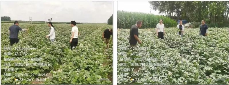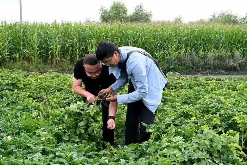 8月14日,金光辉作为双城百亩庭的科技总师,针对企业种植的马铃薯品种垦薯1号因高温造成的“串箭”导致先期结薯个数减少等现象进行了技术指导,同时指导企业如何科学合理的施肥,如何控制植株徒长等,进而促使淀粉含量和产量的增加。通过生产技术指导,促进马铃薯产量和淀粉含量提升,进而增加企业的淀粉加工效益。同时开展新品种的引种试验,筛选出适合当地种植的淀粉加工用马铃薯新品种,既能实现成果转化,同时提高企业的种植和加工效益。通过示范区的带头和示范引领,以增加当地农民种植马铃薯尤其是种植淀粉加工原料薯致富的信心和积极性,带动乡村镇和马铃薯产业发展。