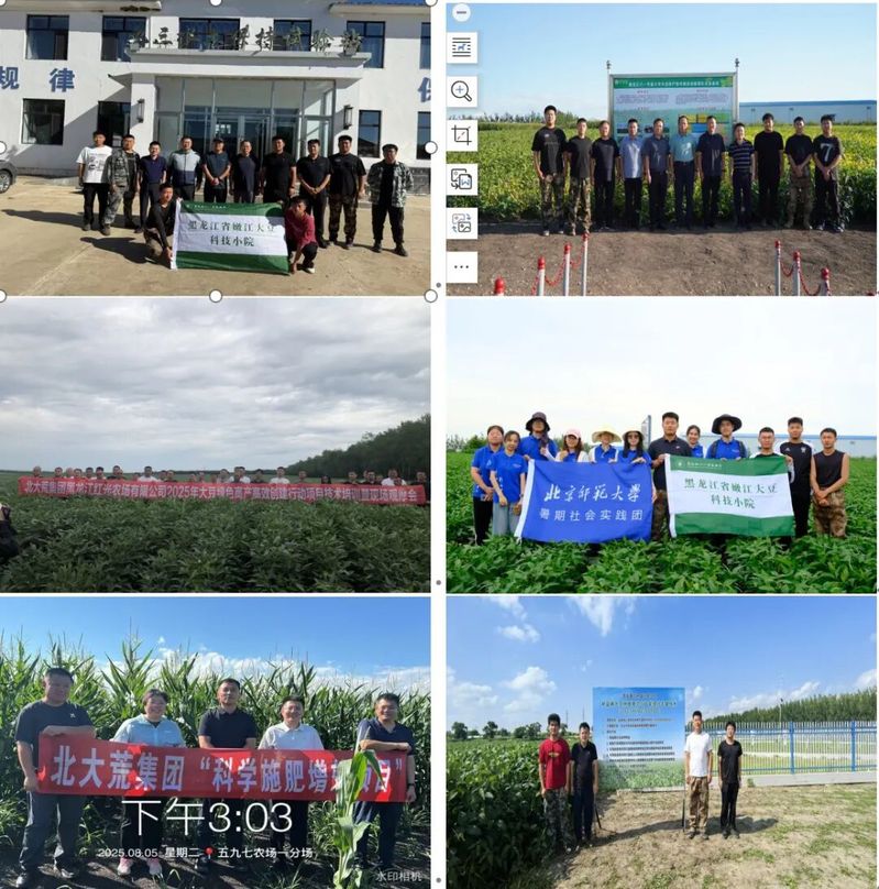 8月,必赢线路检测中心大豆优质高效栽培技术创新团队教师深入北大荒集团各个农场开展大豆夏管指导工作。大豆高产栽培技术创新团队教师近期持续深入北大荒集团各农场,指导大豆高产示范田的田间管理工作。其间,团队负责人张玉先教授在完成一线生产技术指导后,又应邀赴友谊农场,参加中央农业广播电视学校“一喷多促”技术推广节目的现场连线;随后赶赴黑龙江省农业技术推广中心及北安地区开展大豆高产培训,为农技人员和种植户传授关键技术。此外,张教授陪同副董事长孙东波、科技处处长左锋赴嫩江市出席大豆种业联盟成立大会,共同推动大豆种业创新发展。与此同时,嫩江大豆科技小院师生也接待了北京师范大学暑期社会实践团,双方就大豆科技与农业实践开展了深入交流。