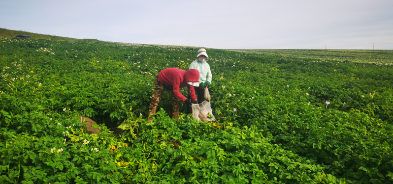 8月18日,金光辉、张桂芝老师前往牙克石,对合作薯业呼伦贝尔宏杉薯业有限公司进行种薯繁育和田间生产情况进行指导,指导企业进行马铃薯X、马铃薯Y病毒及其它病害防控,以提升种薯繁育质量。旨在提高种薯薯业的种薯繁育技术水平,帮扶薯业提高种薯产量和质量。