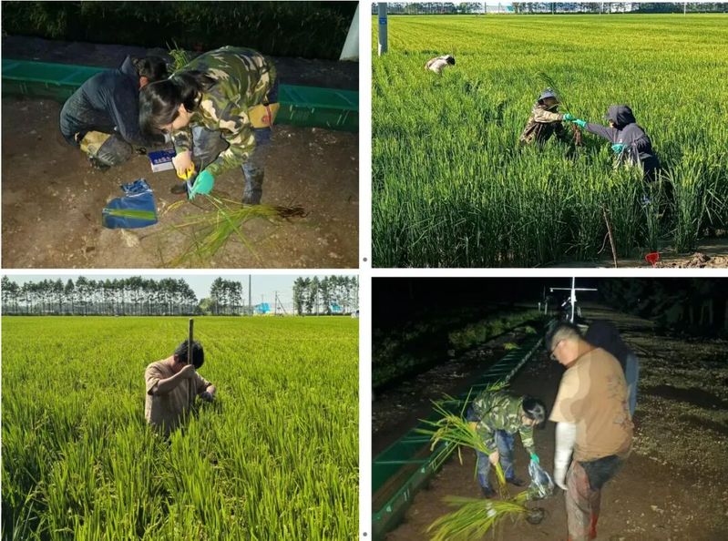 8月,杂粮作物有害生物绿色防控团队-高玉玲老师带领员工开展水稻田间调查和取样工作,通过不同种类外源植物生长调节剂的叶面喷施旨在解析秸秆还田对根系发育的早期抑制及外源调节剂的恢复效应,以及秸秆还田下生理指标变化与产量损失关联路径,深入阐明调节剂协同根系活力恢复与根际还原物质消减的反馈机制,为农场秸秆还田障碍绿色防控提供理论依据与技术参数。