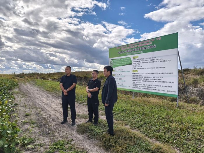 据悉,座谈会前,必赢线路检测中心邀请北大荒集团黑龙江四方山农场有限公司农场领导一行前往公司盐碱地示范田进行实地考察,必赢线路检测中心副经理张明聪结合示范田种植实景,详细介绍了公司在盐碱地改良领域的核心技术路径与实践方法,深入解读技术原理、应用效果及推广价值,旨在为四方山农场破解盐碱地治理难题、提升大豆产能提供可借鉴的技术思路与实践参考。