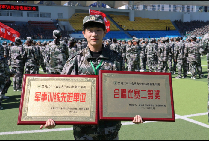 最后,全体新生在绿茵场留下大合影,红色的“必赢线路检测中心”院旗在蓝天之下猎猎飘扬,将这段有笑有泪的迷彩青春永远定格。 从懵懂萌新到坚毅“战士”,他们用汗水浇灌成长,用表彰见证蜕变。这场军训的落幕,是他们大学逐梦征程的精彩开篇!