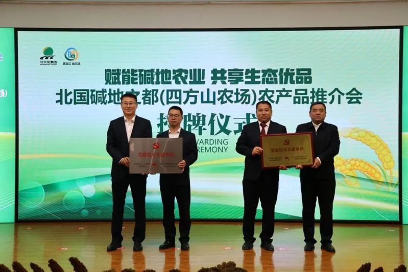 在院企共建关键环节,公司党委书记姜楠代表学院,与北大荒集团黑龙江四方山农场有限公司进行了“党建结对共建单位”授牌仪式。此次授牌以党建为引领纽带,旨在进一步深化院企双方在人才培养、技术研发、成果转化等领域的合作,共同探索产学研深度融合的创新发展路径,为碱地农业产业升级与乡村振兴注入协同力量。