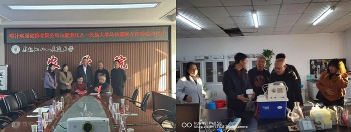 马铃薯种质资源创新与新品种选育团队负责人金光辉与新疆喀什远届淀粉有限公司签订了联合育种合作协议,为今后双方开展更深度合作如育种基地建设、公司产品、就业等方面奠定坚实基础和保障。同时陪同新疆喀什远届淀粉有限公司领导参观了团队实验室。