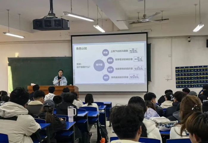 为明确班委职责定位、提升班级管理效能,充分发挥班委在师生间的桥梁纽带作用,10月22日,2025级新生辅导员程旭楠老师面向学院13个班级的全体班委,开展了一场主题鲜明、内容务实的专题培训。