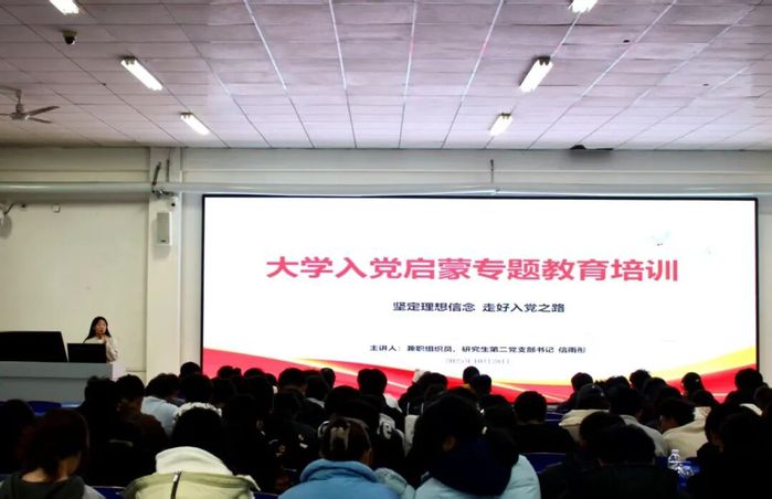 培训聚焦“为什么入党”“入党怎么走流程”“本科生要做什么准备”三大核心。信雨彤老师结合党史中“红军长征”“两弹一星”“脱贫攻坚”的青春故事,点明真正的入党动机应源于对党的信仰与“为人民服务”的认同,而非功利目的。