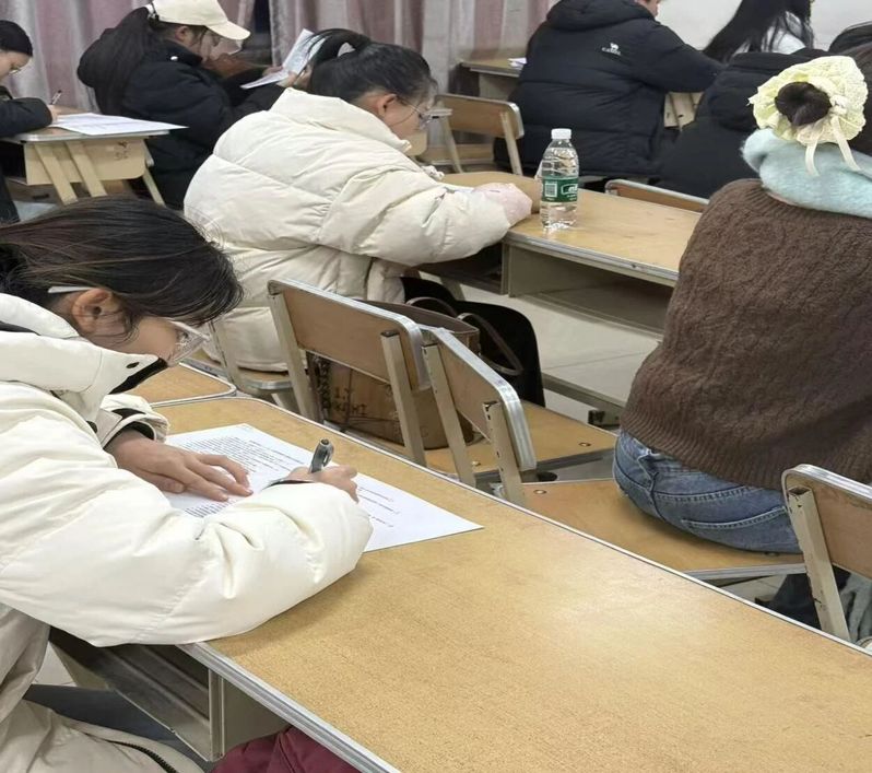 竞赛现场安静有序,同学们手持试卷、伏案书写,目光专注地浏览着关于“一二·九”运动的题目——从运动的导火索到具体历程,从历史影响到精神内涵,笔尖在纸面沙沙作响,既透着认真思索的沉静,也藏着对这段爱国历史的敬重。偶尔有同学轻蹙眉头回忆细节,随即又坚定地写下答案,整个教室都浸在“以笔追史、以知传情”的氛围里。