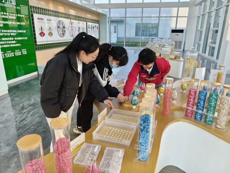 随后,调研团队走访青岛金妈妈种业科技有限公司,总经理周玉忠代表公司对学院一行表示诚挚欢迎。通过专题座谈、成果展示、现场观摩等形式,详细介绍了公司在蔬菜种子研发、智慧农业解决方案输出、全球市场布局等领域的发展成就,重点分享了“打造中国蔬菜种业领军品牌”的发展目标——业务已覆盖国内20多个省份及海外10余个国家和地区,拥有现代化育种基地与智能化生产车间。人力资源王宁君详细介绍了公司以“培育黄金良种,传承优良基因”为核心定位,深耕作物育种领域15余年,核心业务聚焦瓜菜、鲜食玉米等作物的种质资源创新与新品种选育,具体涵盖:抗病番茄、顺直大果高产辣椒、“油亮型”黄瓜砧木、高品质甜瓜砧木、杂交疙瘩绿苦瓜等蔬菜品种,以及甜糯同粒鲜食玉米等粮食作物品种。并结合岗位需求,明确了对农学、种子科学与工程等专业人才的招聘标准,突出研发创新能力、市场开拓意识与跨文化沟通素养的重要性,并介绍公司为员工提供的“研发储备-技术骨干-管理精英”全周期成长体系。