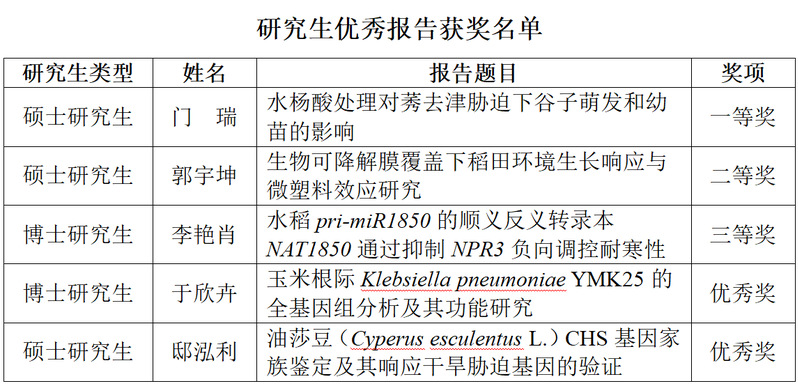 为保证报告质量,作物学科组织学科骨干教师对报告进行严格筛选,并对入选研究生进行了培训与报告提升。本次佳绩的取得也是学经理期以来系统性培养研究生学术创新能力所结出的硕果。未来,作物学科将继续鼓励和支持研究生参与高水平学术交流引导青年学子将青春的论文写在实验室里,更写在祖国广袤的田野上,用实际行动践行强农报国的初心与担当!