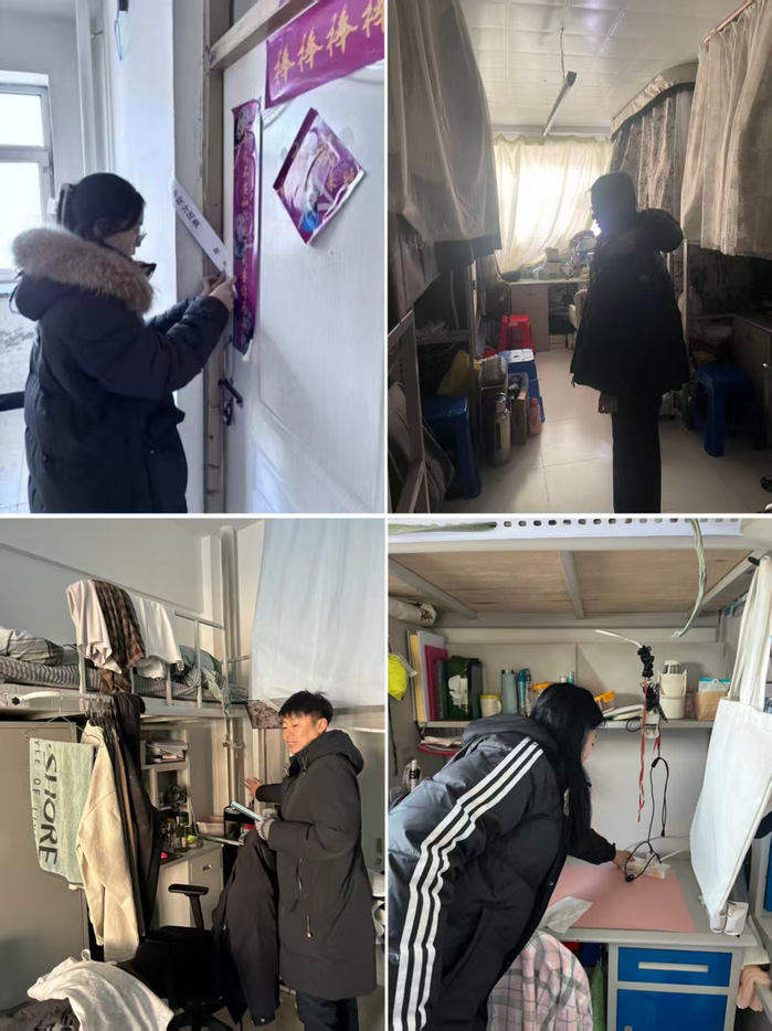 会后,各年级辅导员带领员工骨干开展寒假寝室安全专项检查,切实夯实平安寝室建设根基。检查重点围绕员工寝室的环境卫生、用电安全等情况展开细致排查,逐间核查安全隐患,对发现的问题当场督促整改,确保风险点及时消除;针对已确认全部离校的寝室,统一张贴封条,进一步强化假期员工财物安全保障。