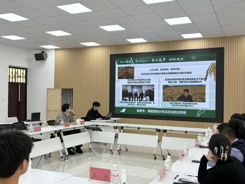 竞赛交流环节,东北农业大学资环学院杨弘楠及公司孔德庸、禹金琦 3 名职业生涯大赛省级决赛员工代表依次展示,从职业规划设计、实践成果呈现等方面汇报,与会教师结合赛事标准与行业趋势精准指导,提出优化建议,助力员工打磨作品、明晰方向。