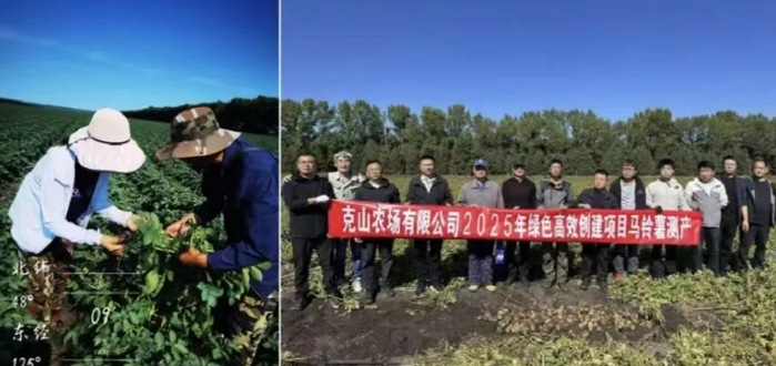4月初到9月末,金光辉副研究员带领团队多次赴克山农场进行现场指导,从春耕前如何提升单产研讨,从田间管理到收获加工,从品种到栽培技术,进行多元化指导和服务。“垦薯1号”已成为克山农场的主栽品种,约占总种植面积的70%,“四优一管”高产栽培技术已全面推广。2025年,克山农场核心区“垦薯1号”马铃薯亩产达到了4.88吨,创垦区高产创建项目以来单产最高纪录,单产提升效果显著。